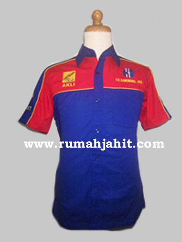 Design Seragam Kerja PDL yang satu ini agak lumayan bagus untuk standar seragam kerja karena menggunakan bahan yang tidak standar. Bahan yang di gunakan American Drill Verlando warna Biru kombinasi Merah dan list Kuning. Dengan Logo bordir komputer. Model Kombinasi Atas Bawah dan List.