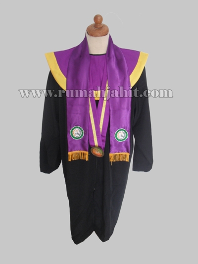 Toga Wisuda STIK Bina Nusantara IDI Rayeuk yang satu ini agak lumayan bagus untuk standar Toga Wisuda karena menggunakan bahan yang tidak standar. Bahan yang di gunakan Bestway warna Hitam. Atas pemikiran tersebut maka jadilah baju Toga Wisuda yang “manis” dengan bahan Bestway warna Hitam. Pemilihan bahan pada sleber atau kerah menggunakan bahan satin dengan warna Ungu list Kuning. Pada topi berbahan Bestway dengan warna Hitam kuncir Kuning. Pada kalung menggunakan bahan satin berwarna Ungu list Kuning plus medali menggunakan logam kuningan berlogo dan terlapisi resin. Selain itu pada bagian Selendang menggunakan bahan Satin warna Ungu berlogo bordir komputer.