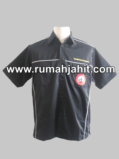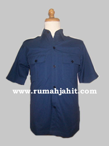 Design yang satu ini agak lumayan bagus untuk standar seragam kerja karena menggunakan bahan yang tidak standar. Selain itu Bahan yang di gunakan Japan Drill Taipan Tropical warna Biru Dongker. Dengan Logo bordir komputer. Model Standard Saku atau Kantong 2 buah.