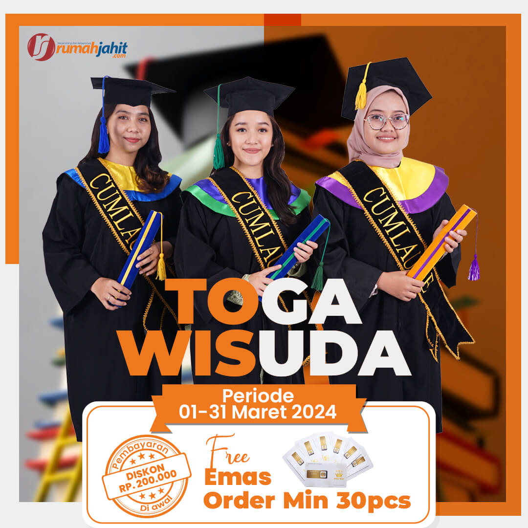 Maka dari itu, percayakan kebutuhan toga wisuda anda pada www.rumahjahit.com. Kami adalah perusahaan konveksi yang menerima berbagai macam orderan toga wisuda dari berbagai instansi. Pengalaman kami telah bertahun-tahun dan menyelesaikan berbegai pesanan dari banyak instansi ternama dengan harga yang bersahabat.